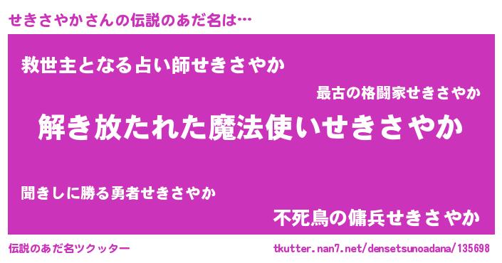 | 女子向けラノベタイトル風あだ名 | 『せきさやかの卵を拾いまして』 |
