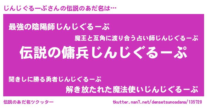 | 胡散臭い通販商品みたいなあだ名 | 『必ず成功する水晶球…その名も「じんじぐるーぷ」』 |