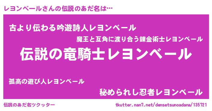 | 意味不明あだ名 | 『住所不定無職レヨンベール(2歳)』 |