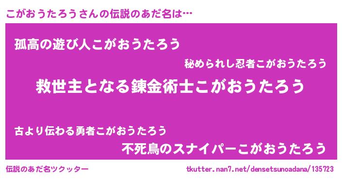 | 男性向けラノベタイトル風あだ名 | 『ノーゲーム・ノーコガオウタロウ』 |