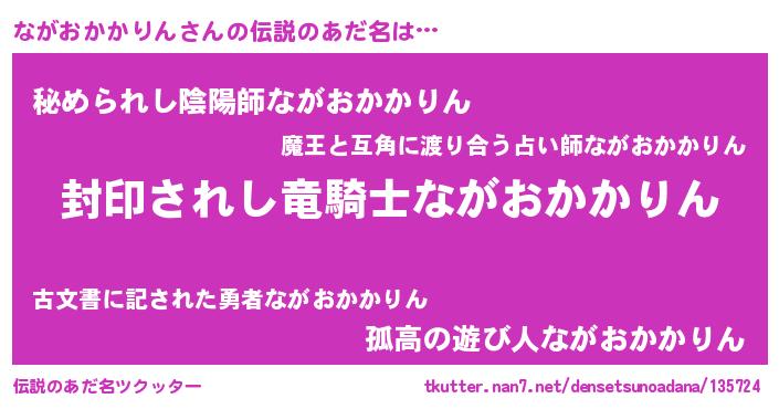 | 恥ずかしいあだ名 | 『プリティーながおかかりん』 |
