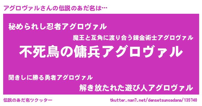 | 男性向けラノベタイトル風あだ名 | 『アグロヴァルの憂鬱』 |