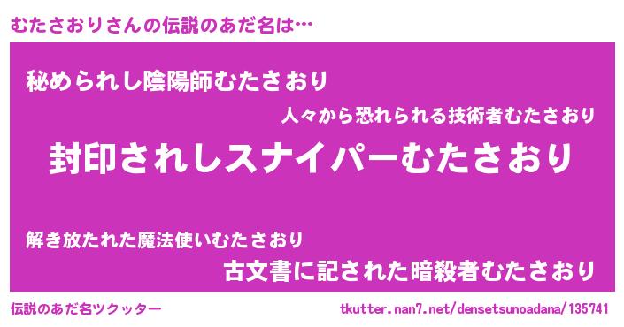 | 男性向けラノベタイトル風あだ名 | 『むたさおりに滅ぼされるだけの簡単なお仕事です』 |