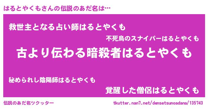 | 意味不明あだ名 | 『永久保存はるとやくも』 |