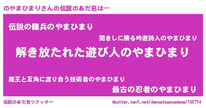 | ヒーロー風カッコイイあだ名 | 『幻影騎士ノヤ』『スーパーノヤマヒマリ』 |