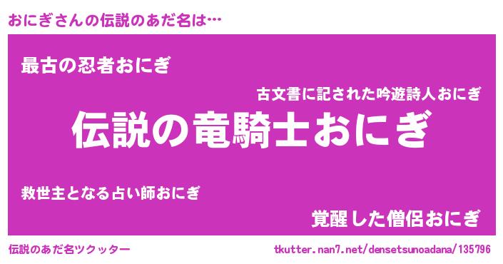 | 胡散臭い通販商品みたいなあだ名 | 『必ず成功するブレスレット…その名も「おにぎ」』 |