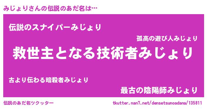 | ヒーロー風カッコイイあだ名 | 『天空の使者みじょり』『仮面ミジダー』 |