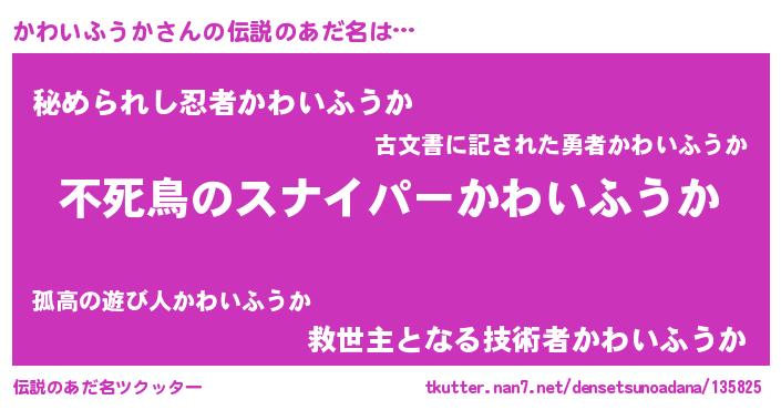 | 意味不明あだ名 | 『たけのこ科かわいふうか属』 |