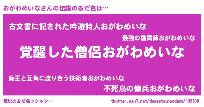 | ヒーロー風カッコイイあだ名 | 『仮面オガダー』『最強戦士オガワメイナ』 |