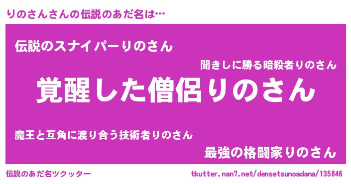 | 意味不明あだ名 | 『住所不定無職りのさん(68歳)』 |