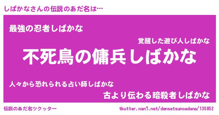 | ファンタジー風あだ名 | 『シバフェル』『エターナルシバカナー』 |