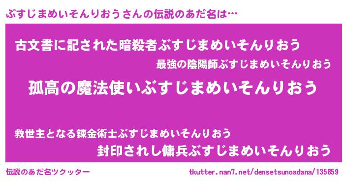 | 胡散臭い通販商品みたいなあだ名 | 『信頼と実績のサプリメント…その名も「ぶすじまめいそんりおう」』 |