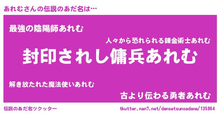 | 意味不明あだ名 | 『住所不定無職あれむ(62歳)』 |