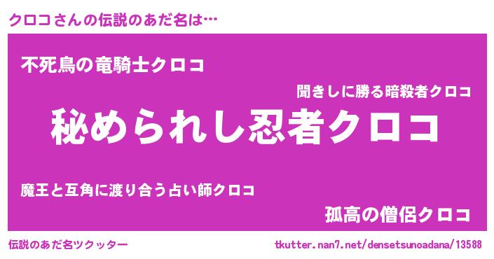 | ヒーロー風カッコイイあだ名 | 『超時空戦士クロコ』『仮面クロダー』 |