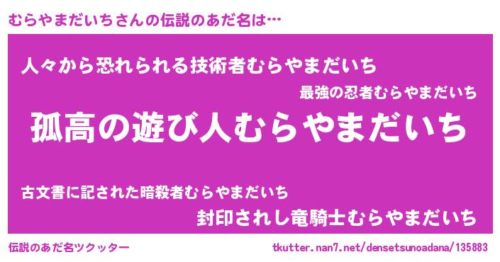 | 意味不明あだ名 | 『住所不定無職むらやまだいち(93歳)』 |