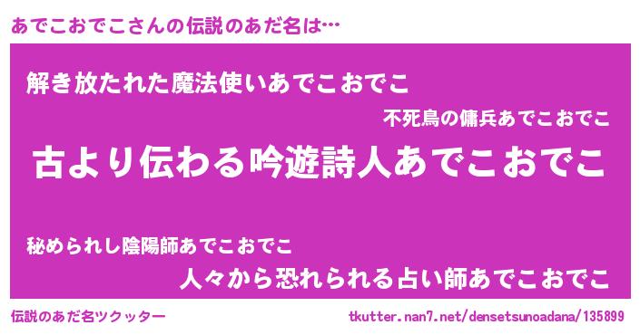 | 意味不明あだ名 | 『住所不定無職あでこおでこ(3歳)』 |