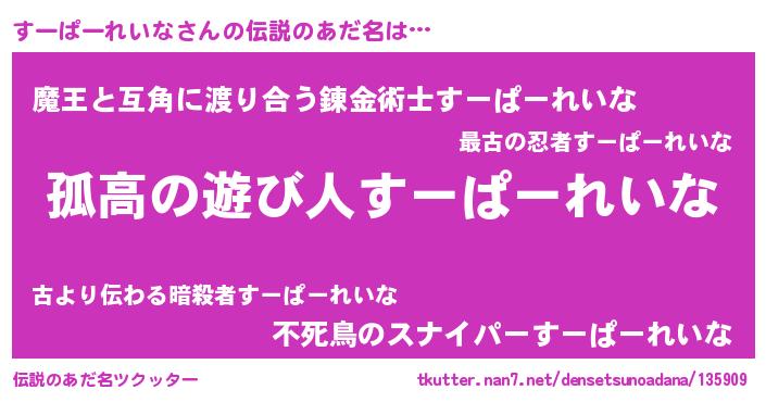 | 意味不明あだ名 | 『住所不定無職すーぱーれいな(71歳)』 |