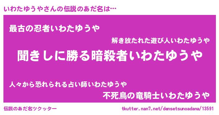 | ヒーロー風カッコイイあだ名 | 『ネオイワタユウヤ』『天弓騎士イワ』 |
