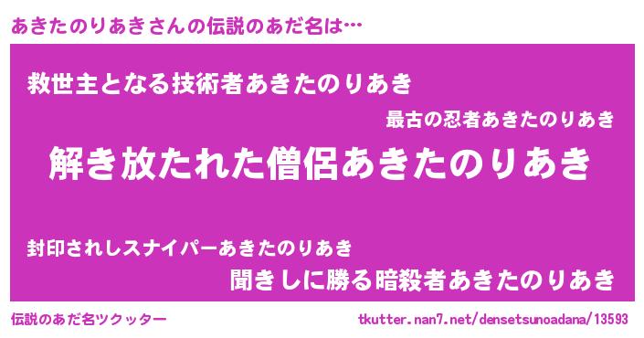 | 意味不明あだ名 | 『住所不定無職あきたのりあき(41歳)』 |