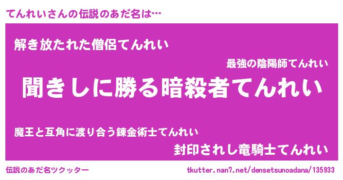 | ヘコむあだ名 | 『てんれい(爆)』『てんっ子』 |