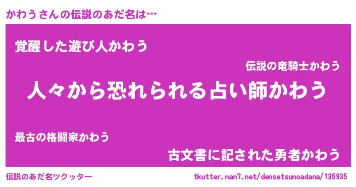 | ヒーロー風カッコイイあだ名 | 『友情の使者かわう』『幻影騎士カワ』 |