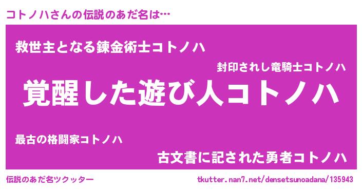 | ヒーロー風カッコイイあだ名 | 『幻影騎士コト』『最強戦士コトノハ』 |