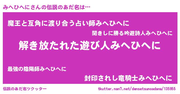 | ヒーロー風カッコイイあだ名 | 『銀牙騎士ミヘ』『天空の使者みへひへに』 |