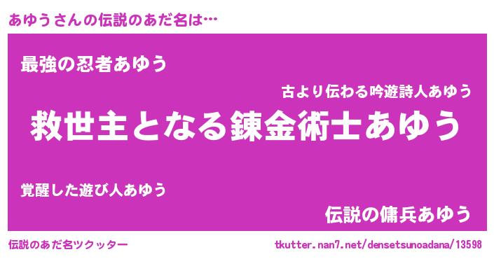 | ヒーロー風カッコイイあだ名 | 『慈愛の使者あゆう』『スーパーアユウ』 |