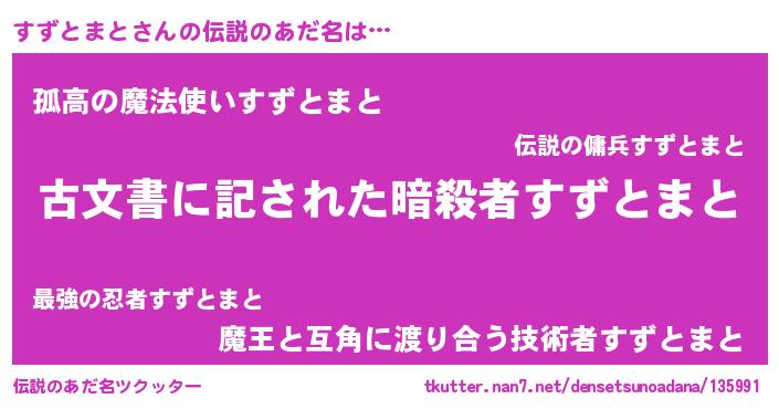 | 男性向けラノベタイトル風あだ名 | 『Re:すずとまとから始める異世界生活』 |