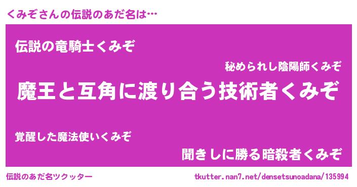 | ヒーロー風カッコイイあだ名 | 『サイバー戦士クミゾ』『スーパークミゾ』 |