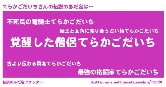 | ポケモン風あだ名 | 『テラキング』『ヒテラカゴダイチ』 |