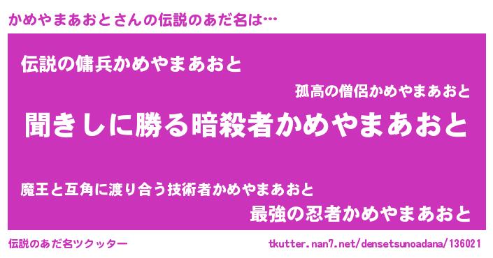 | 意味不明あだ名 | 『永久保存かめやまあおと』 |