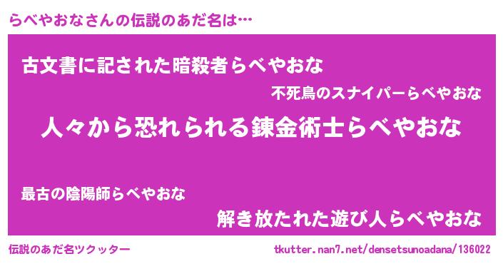 | ヒーロー風カッコイイあだ名 | 『正義の使者らべやおな』『黄金騎士ラベ』 |