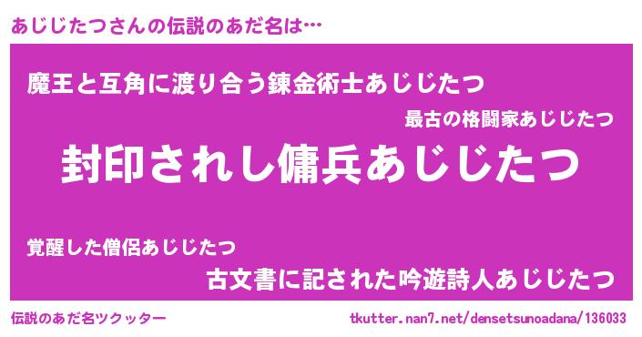 | 意味不明あだ名 | 『住所不定無職あじじたつ(40歳)』 |
