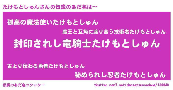 | ヒーロー風カッコイイあだ名 | 『スーパータケモトシュン』 |
