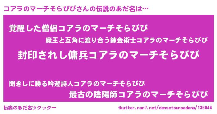 | ヒーロー風カッコイイあだ名 | 『スーパーコアラノマーチソラビビ』 |