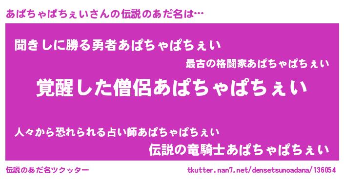 | 意味不明あだ名 | 『とにかく怪しいあぱちゃぱちぇい』 |