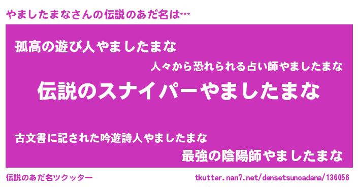 | ヒーロー風カッコイイあだ名 | 『スーパーヤマシタマナ』『暗黒騎士ヤマ』 |