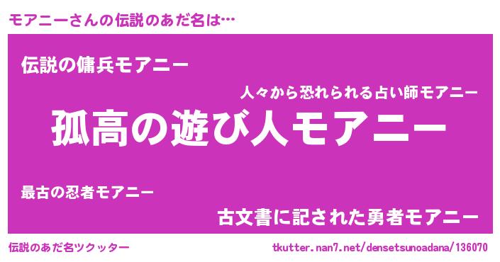 | 意味不明あだ名 | 『とにかく怪しいモアニー』 |