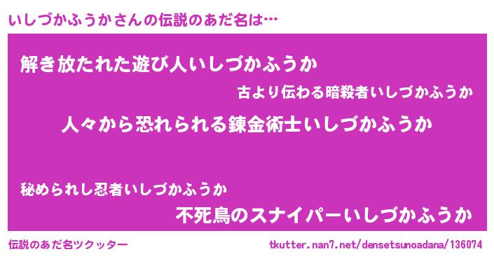 | 女子向けラノベタイトル風あだ名 | 『いしづかふうか夫妻のなれそめ』 |