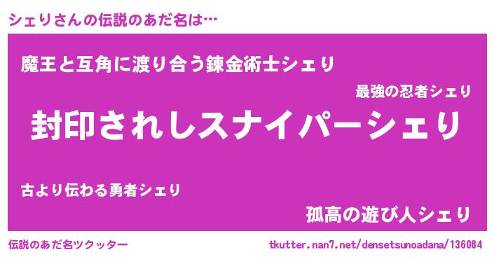 | 男性向けラノベタイトル風あだ名 | 『シェリアートオンライン』 |