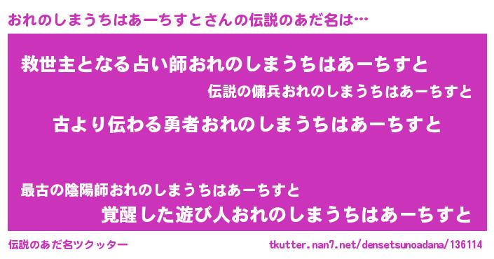 | ヒーロー風カッコイイあだ名 | 『ネオオレノシマウチハアーチスト』 |