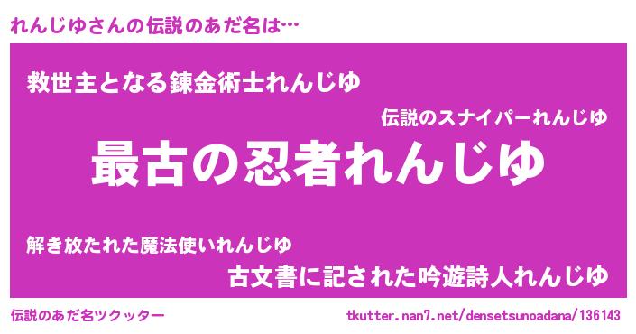| 意味不明あだ名 | 『れんじゆフォーエバー』 |