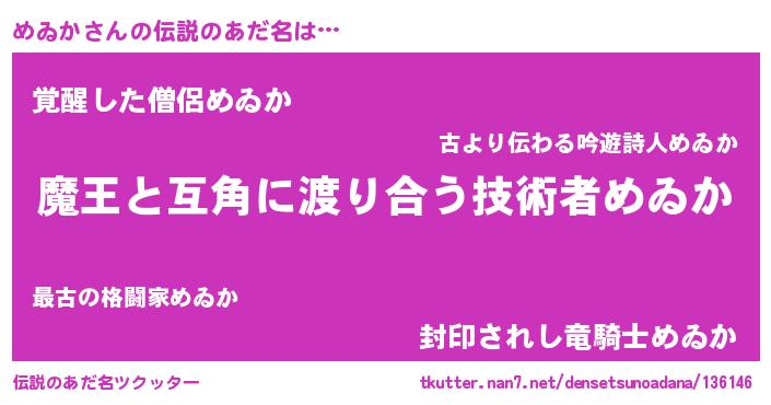 | ヒーロー風カッコイイあだ名 | 『愛の使者めゐか』『幻影騎士メヰ』 |