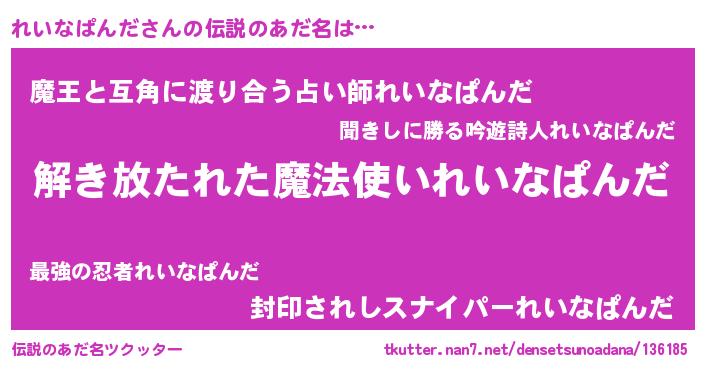 | 意味不明あだ名 | 『とにかく怪しいれいなぱんだ』 |