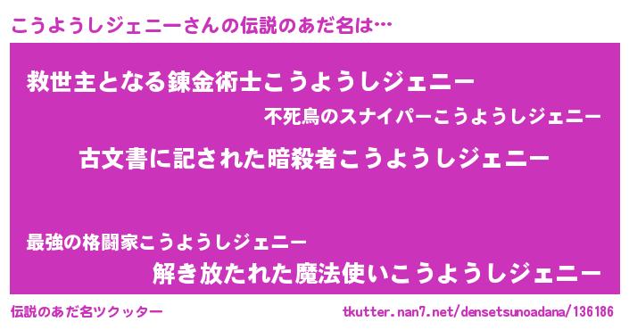 | 胡散臭い通販商品みたいなあだ名 | 『前代未聞の健康食品…その名も「こうようしジェニー」』 |