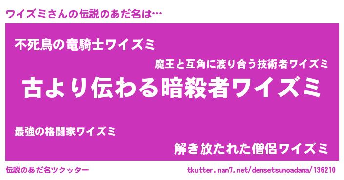 | 意味不明あだ名 | 『自称ワイズミ』『永久保存ワイズミ』 |