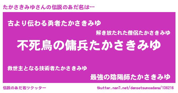 | 女子向けラノベタイトル風あだ名 | 『たかさきみゆ姫と円卓の騎士』 |