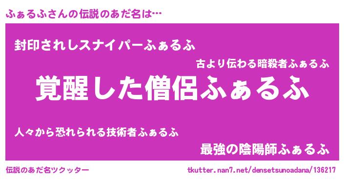 | 意味不明あだ名 | 『住所不定無職ふぁるふ(41歳)』 |