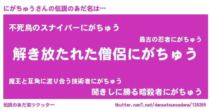 | ヒーロー風カッコイイあだ名 | 『サイバー戦士ニガチュウ』 |